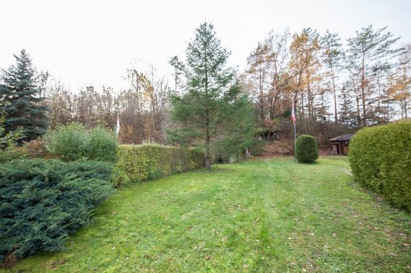 Der sonnige Garten grenzt im hinteren Bereich an ein kleines Wäldchen und sorgt damit für natürliche Ruhe und Privatsphäre. Ein besonderes Plus: Das Grundstück ist auch von der Rückseite mit dem Auto erreichbar, was Gartenarbeiten oder den Abtransport von Grünschnitt besonders bequem macht.
