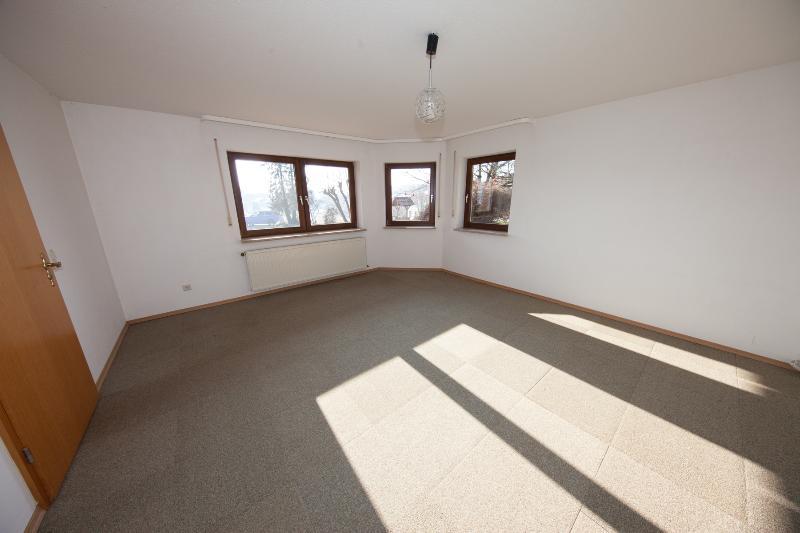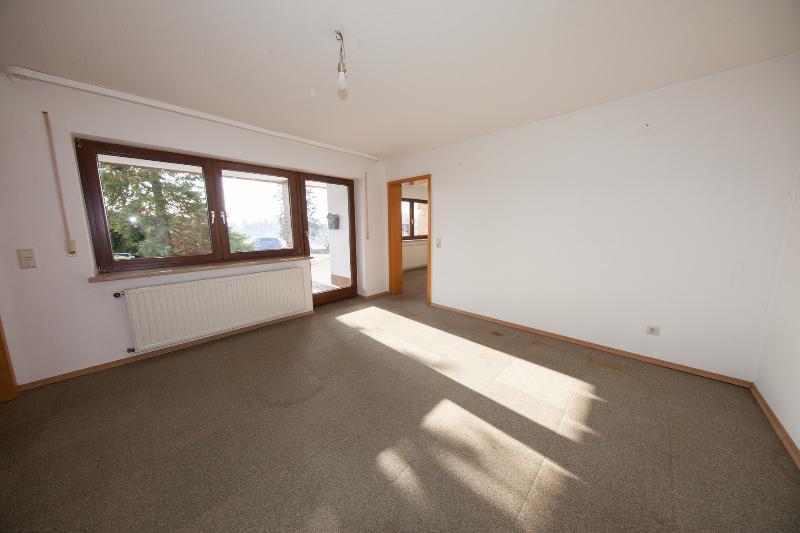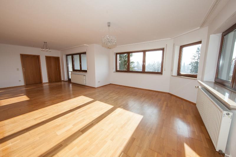 Das Herzstück des Hauses bildet das mit ca. 40 m² sehr großzügige, lichtdurchflutete Wohnzimmer. Von hier aus gelangen Sie auf den großen Balkon, der einen traumhaften Fernblick über Felder und Wiesen bietet.