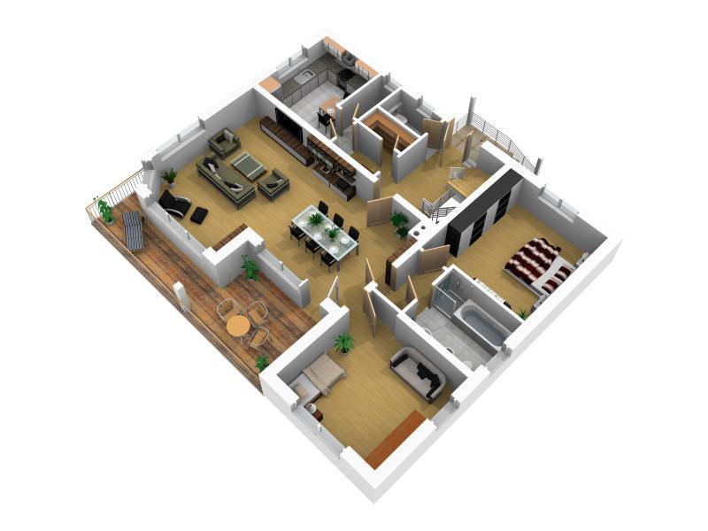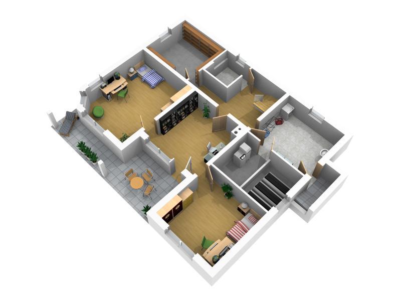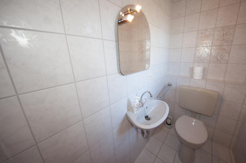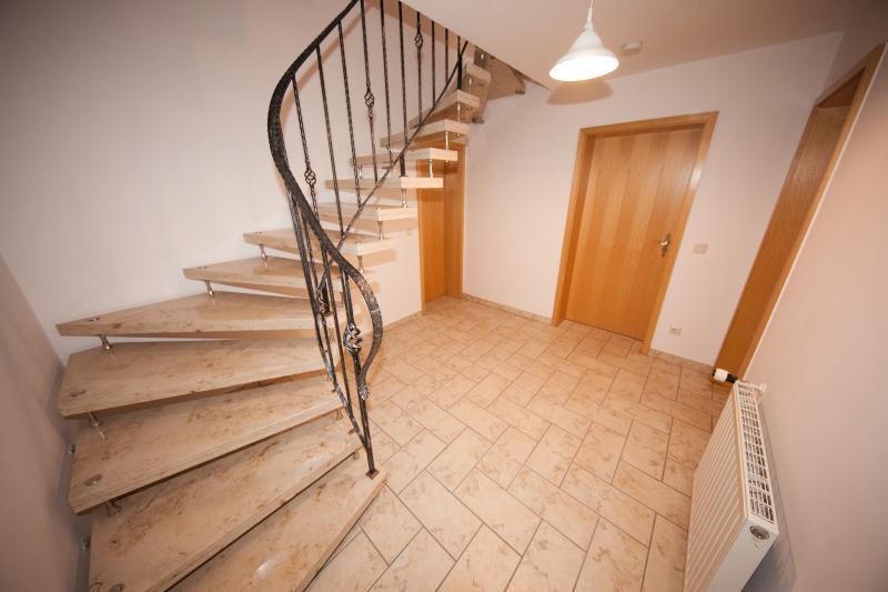 Außerdem befinden sich auf dieser Ebene zwei Schlafzimmer, das Badezimmer, die Küche mit der angrenzenden Speisekammer, der Abstellraum und das Gäste WC.