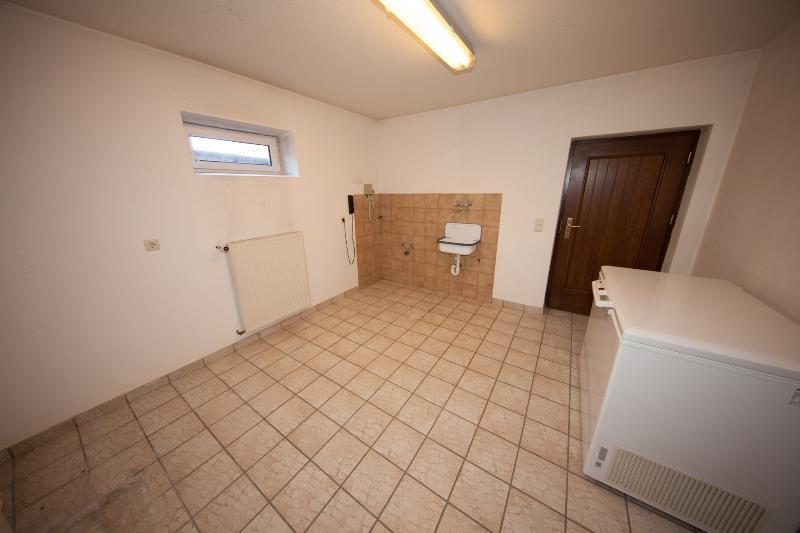 Ein Badezimmer ist hier bereits vorbereitet und könnten mit geringem Aufwand fertiggestellt werden. Von dieser Ebene aus haben Sie direkten Zugang zur Terrasse und in den Garten. Ein Kellerraum, die Waschküche und der Heizraum, schließen sich im hinteren Bereich an die Wohnräume an.