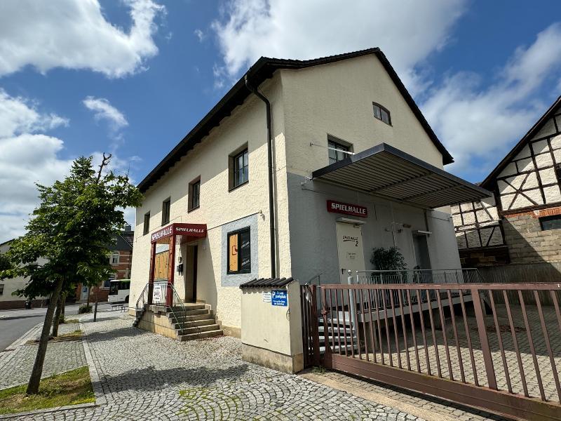Dieses voll unterkellerte Wohn- und Geschäftshaus liegt in der Innenstadt von Bad Rodach direkt gegenüber des Bahnhofs. Die Immobilie wurde 1932 in in Massivbauweise errichtet. Die Räume im Erdgeschoss, sowie im 1.Obergeschoss wurden bislang als Spielothek genutzt. Im 1.Obergeschoss befindet sich neben den Gewerberäumen auch eine großzügige 2-Zimmer Wohnung mit ca. 70 m² Wohnfläche. Insgesamt steht eine Wohn- und Gewerbefläche von 320 m² zur Verfügung. Das Dachgeschoss bietet bei Bedarf weiteres Ausbaupotential. An das Haus schließt sich ein Parkplatz mit 2 großen Garagen und einem Carport an. Die Immobilie kann sofort selbst genutzt oder vermietet werden.