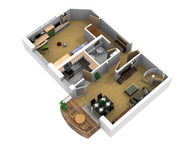 Diese attraktive 3-Zimmer-Maisonettewohnung liegt inmitten des Kurgebiets von Bad Rodach in ruhiger und dennoch zentraler Lage. Die Wohnfläche von ca. 83 m² verteilt sich auf zwei, gut geschnittene Ebenen.